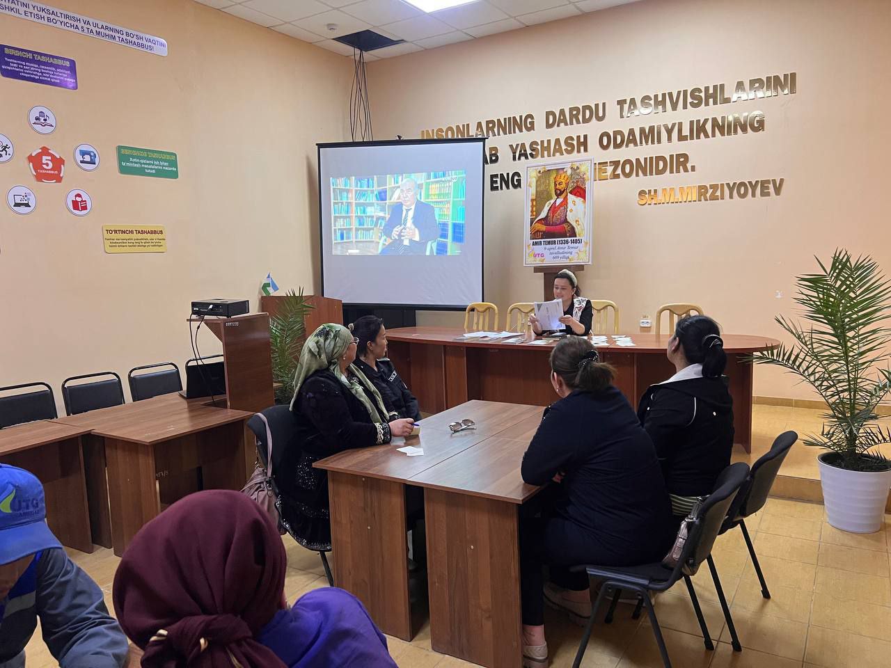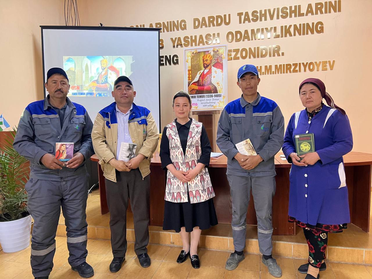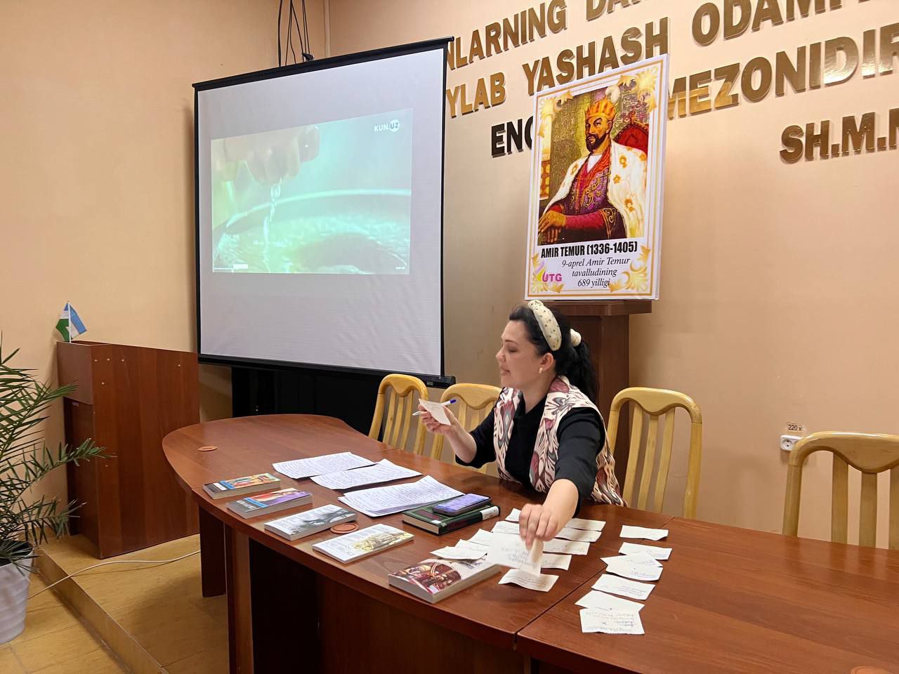 Tadbir davomida kutubxona xodimlari tomonidan Amir Temurning hayoti, davlat boshqaruvidagi o‘rni, harbiy strategiyasi va ma’naviy merosi haqida qiziqarli ma’lumotlar taqdim etildi 📚✨
