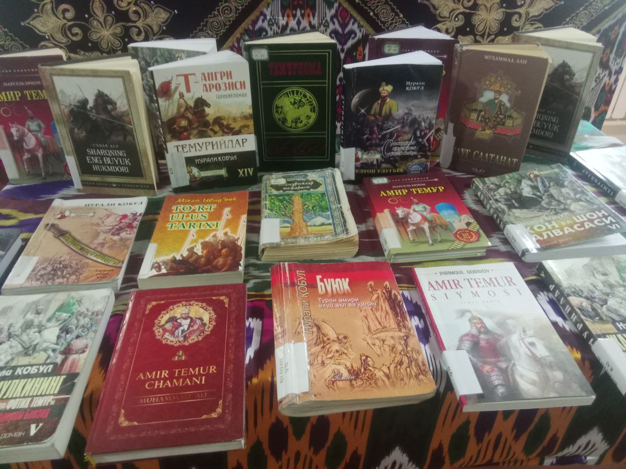 ⚔️Unda buyuk sarkarda Amir Temurning hayoti, harbiy yurishlari va harbiy san’ati yoritilgan kitoblar taqdim etilgan.