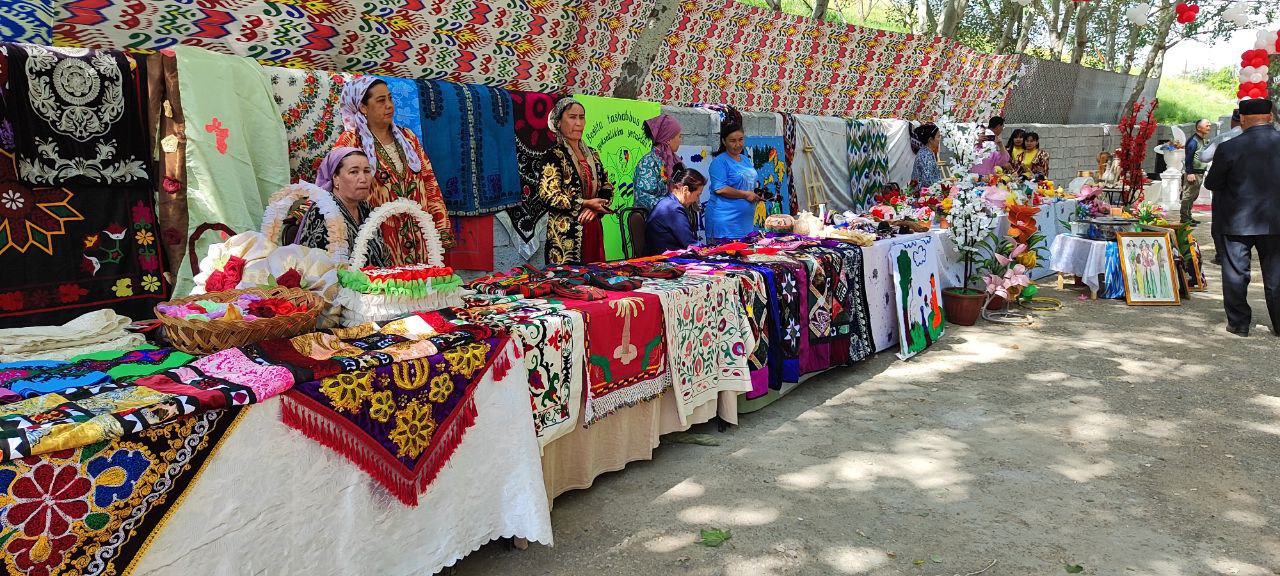 tanishtirildi.Shuningdek mahalla aholining urf- odatlari milliy liboslar , hunarmandchilik , uy- ro'zg'or buyumlari ko'zgazmasi namoyish etildi.Bayram tadbirida