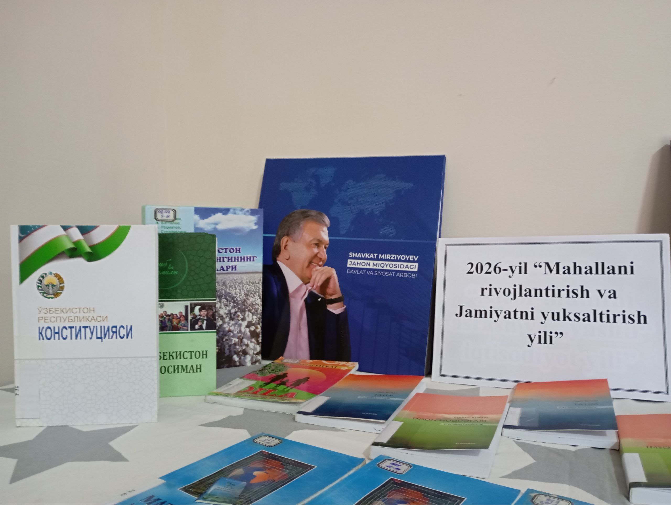 G'allaorol tumani axborot-kutubxona markazining o'quv zalida Prezidentimiz tomonidan 2026-yil O‘zbekistonda “Mahallani rivojlantirish va jamiyatni yuksaltirish yili” deb e’lon qilinganligi sababli kitob ko'rgazmasi tashkil qilindi.