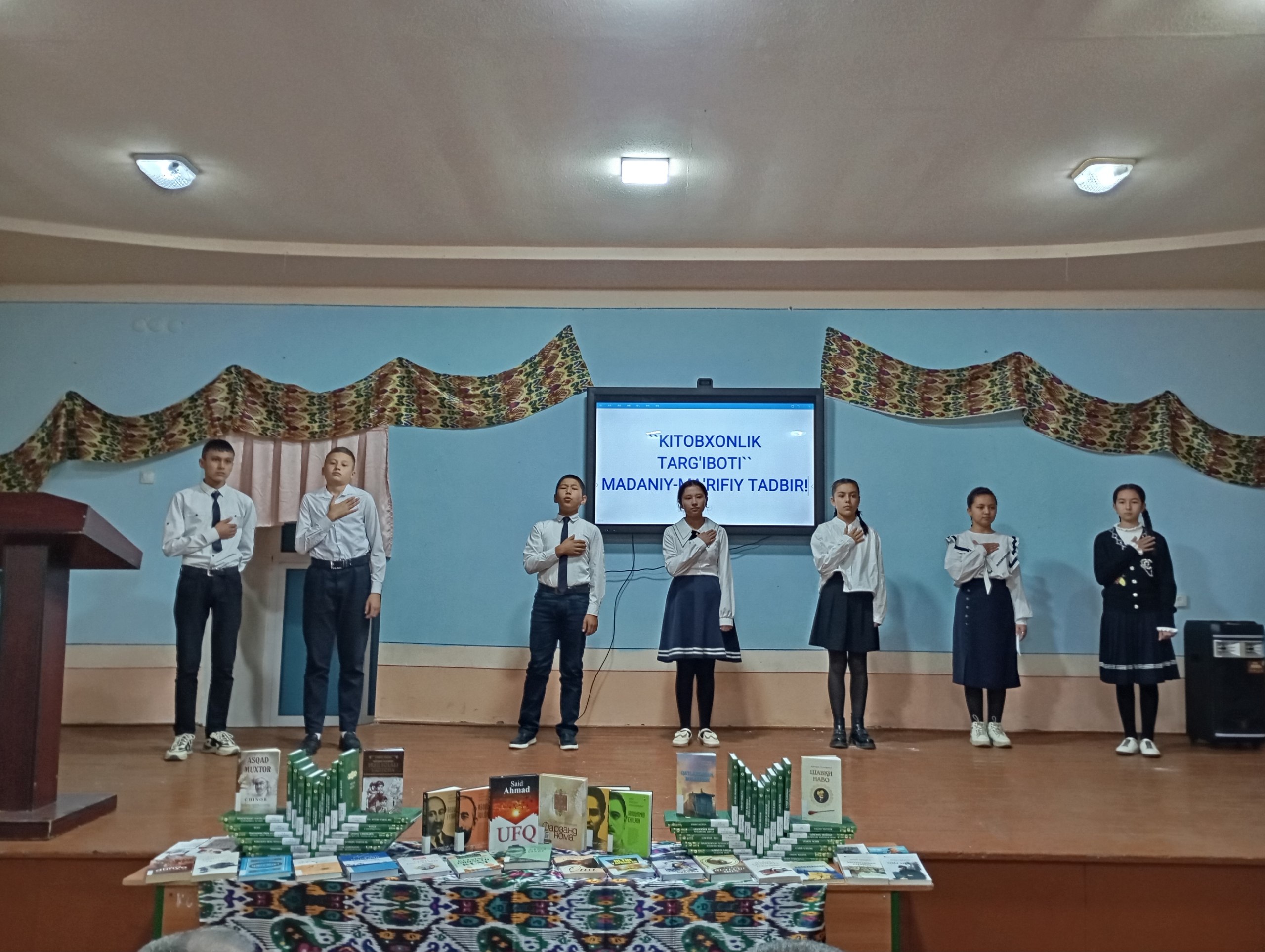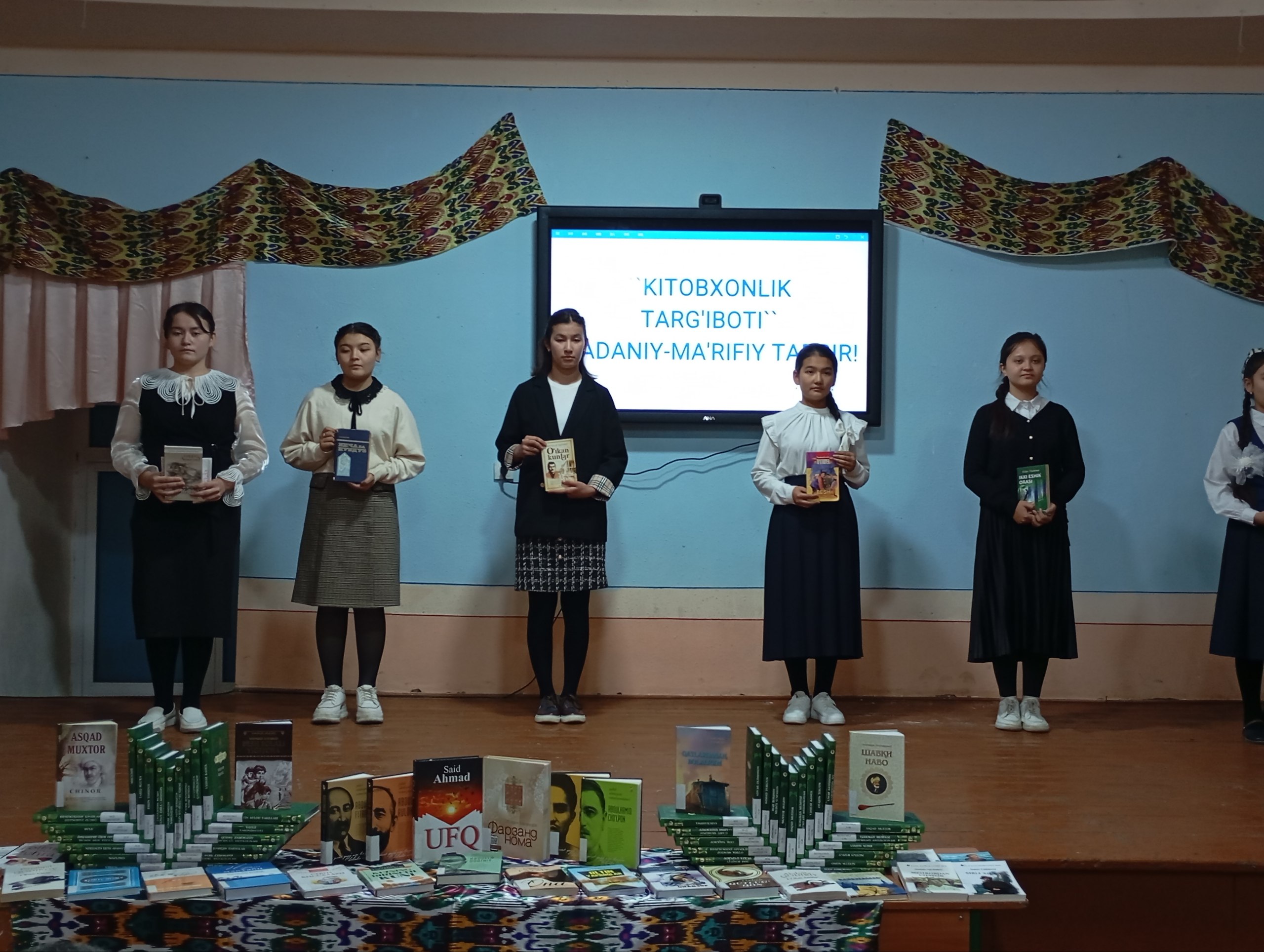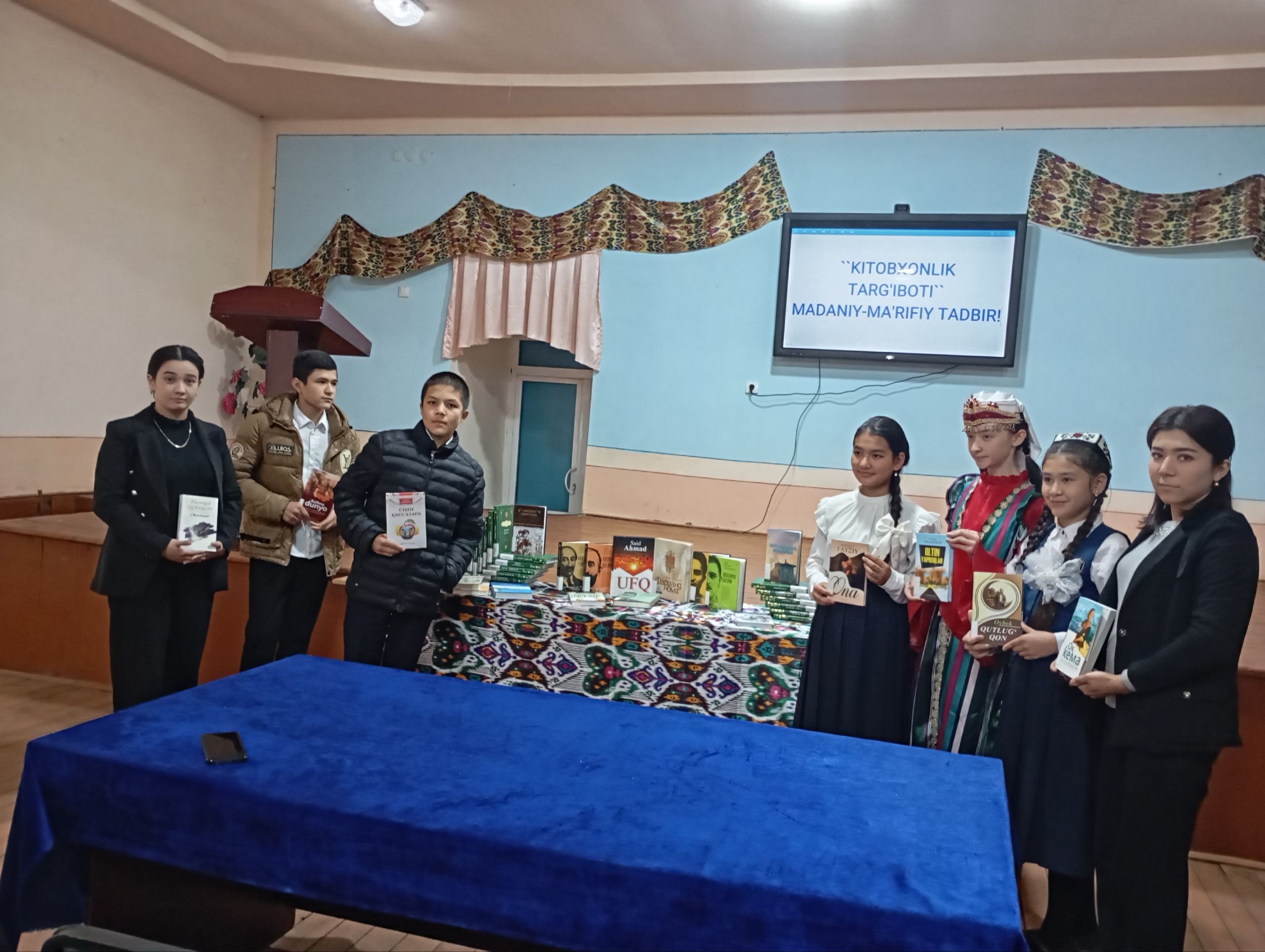 25 - maktab o'quvchilari bilan yoshlar orasida kitobxonlikni oshirish borasida “Kitob – mening eng yaqin do‘stim” mavzusida davra suhbatlari, “Bu kitobni har bir inson o‘qishi kerak” g‘oyasi ostida kitoblar ko‘rgazmalari tashkil etildi.