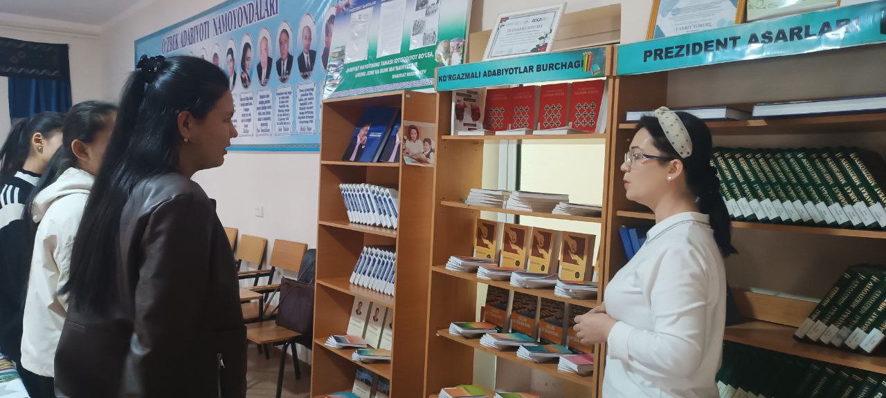 Joriy yilning 24-fevral kuni tuman axborot-kutubxona markazida O‘zbekiston Respublikasi Prezidentining 2026-yil 15-yanvardagi “Kitobxonlik madaniyatini rivojlantirish va aholi o‘rtasida kitob o‘qishga qiziqishni oshirish chora-tadbirlari to‘g‘risida”gi PQ–9-son qarori ijrosi yuzasidan kitoblar koʻrgazmasi tashkil etildi va kitobxonlarga yaqindan ma'lumotlar berildi.