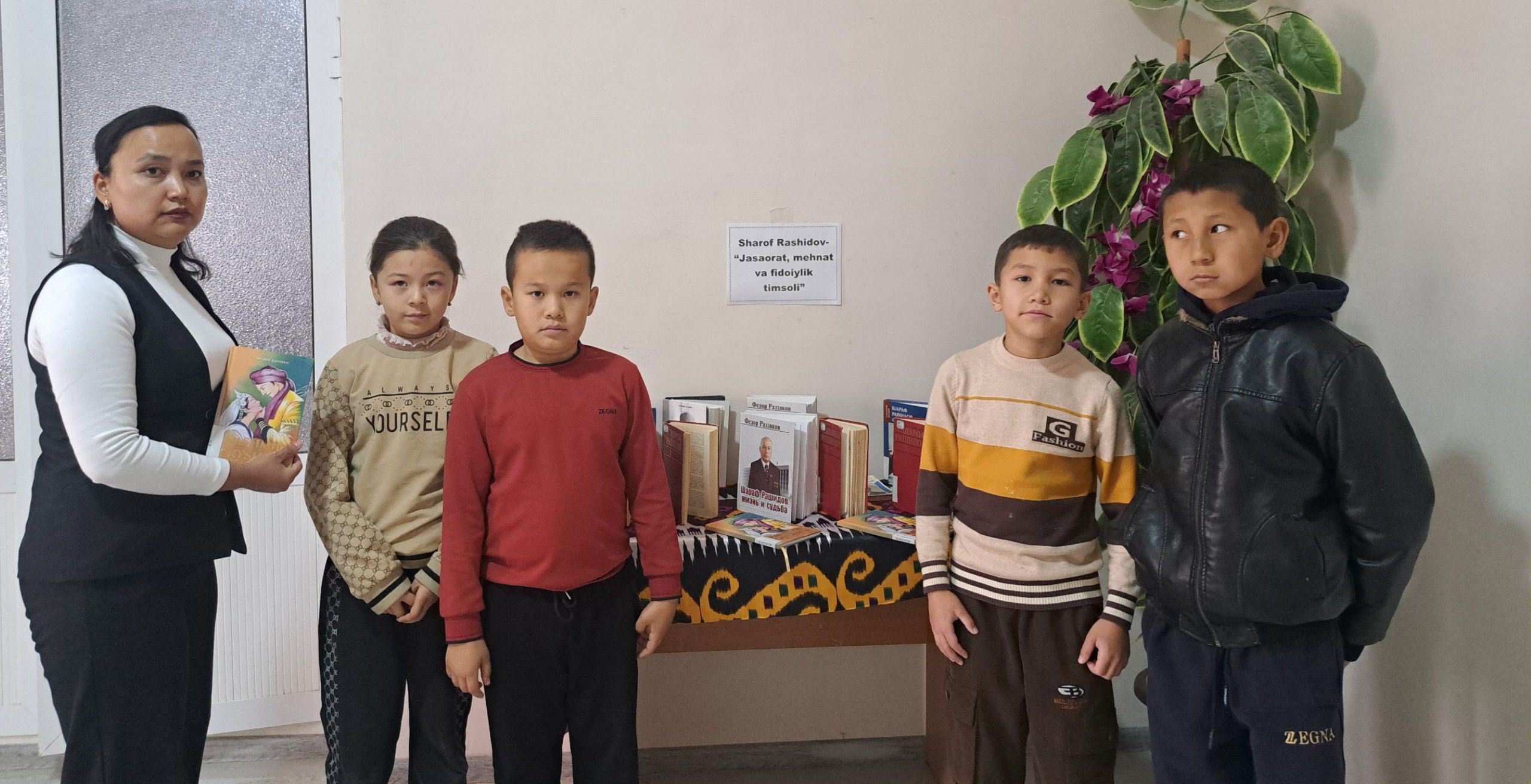 Sharof Rashidovning 108-yilligi munosabati bilan "Jasorat, mehnat va fidoiylik timsoli " mavzusida kitoblar ko'rgazmasi tashkil etildi