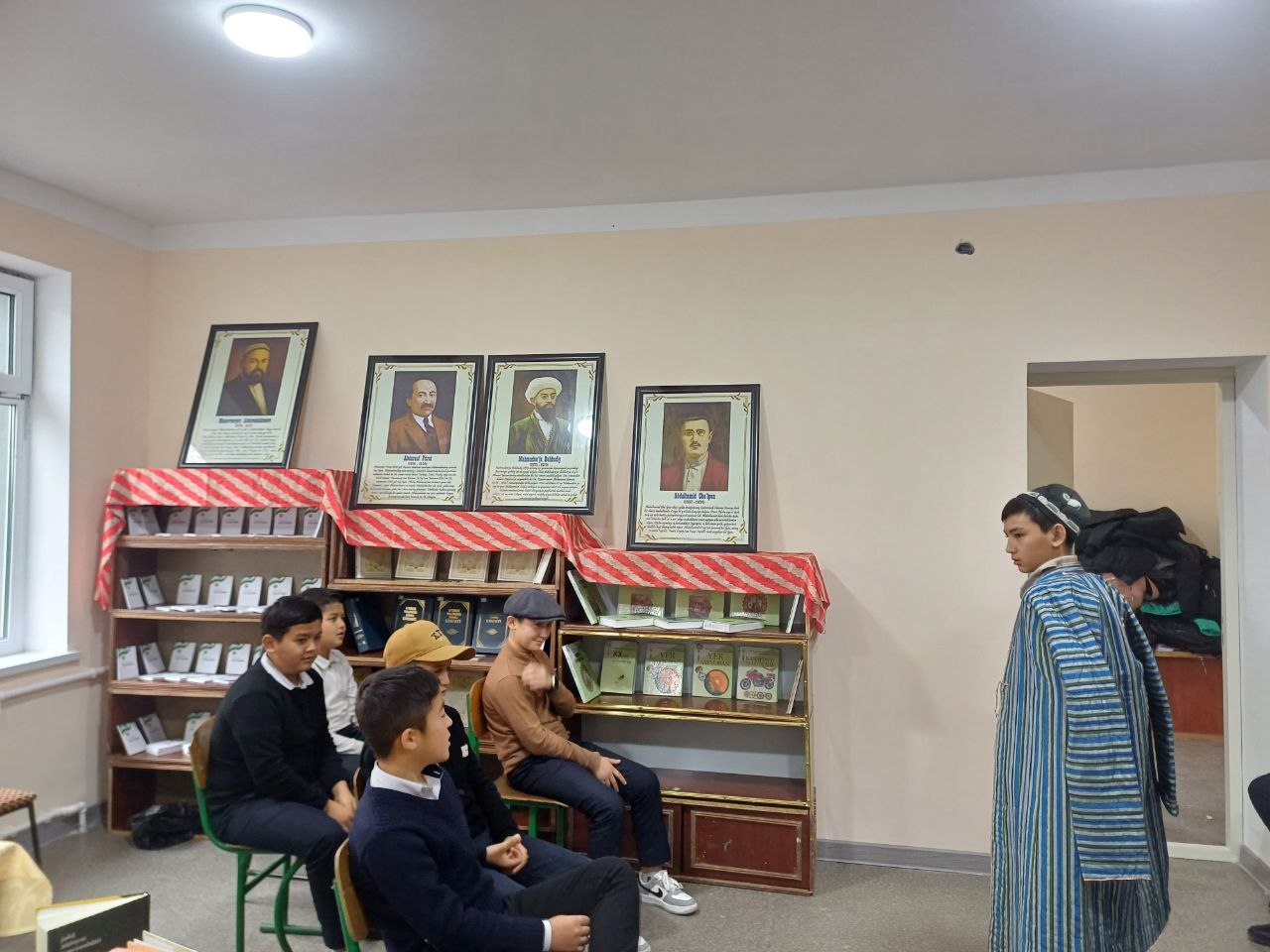 42- umumiy o‘rta ta‘lim maktabining o‘quvchilari ishtirokida davra suhbati hamda she'riyat kechasi tashkil qilindi. Davra suhbatida adiblarning hayoti va ijodidan ma'lumotlar berilib she'rlaridan o'qib ularga ta'rif va sharxlar berildi. Shundan so'ng she'riy bahru bayt hamda qiziqarli savol javob o'yinlari tashkil etildi.Tadbirda 30 dan ortiq kitobxon óquvchilar ishtirok etishdi.