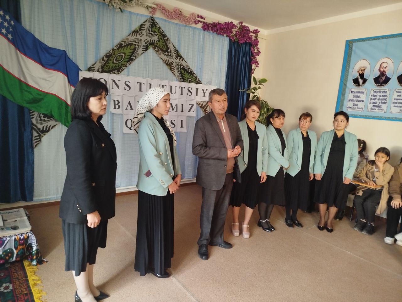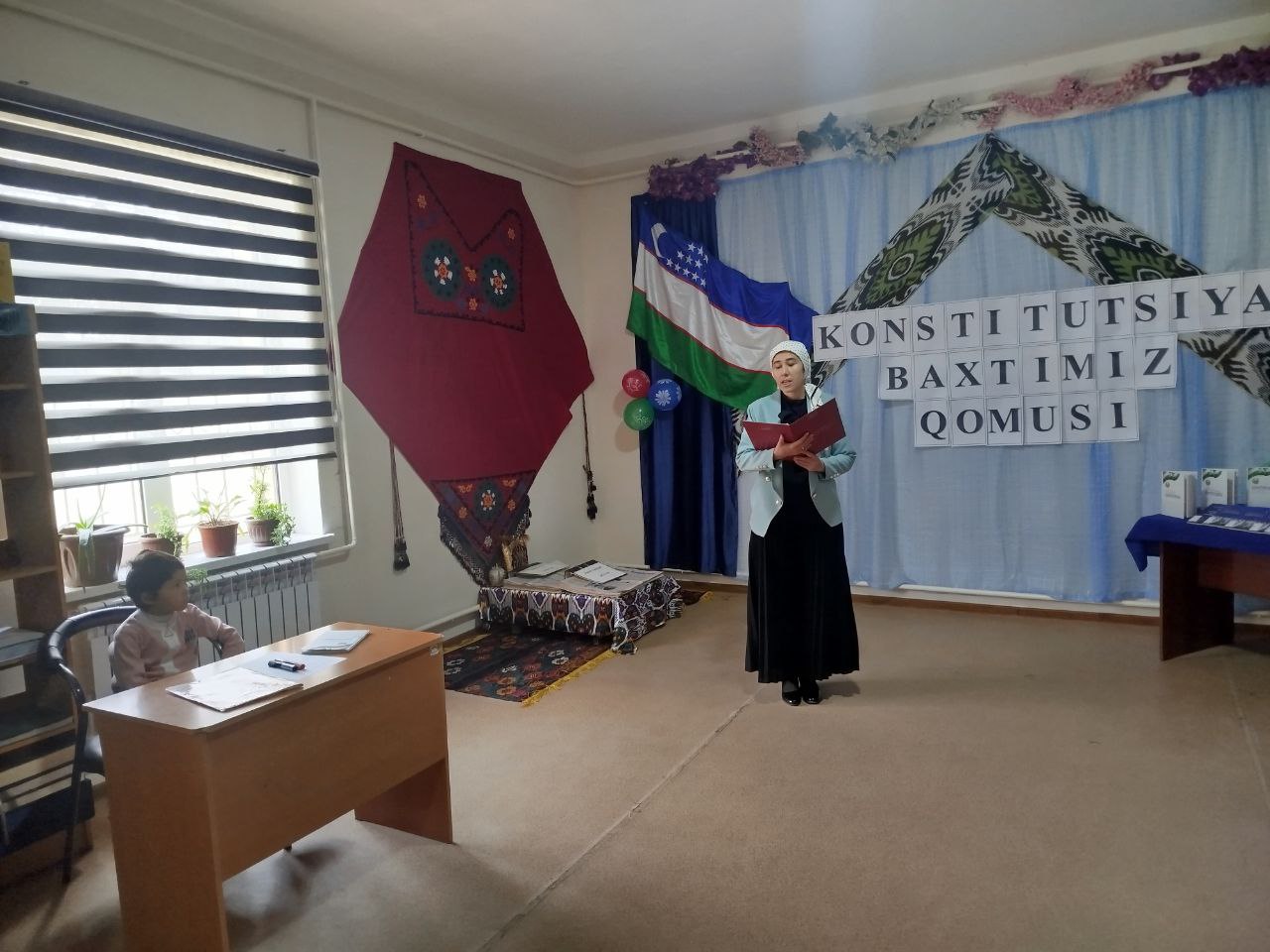"Konstitutsiya 33 yillik bayramiga bag'ishlab o'tkazilgan tadbirda xodimlar tomonidan, obod vatan,bosh qomusimizni madh etuvchi badiiy dasturlar tadbir mehmonlariga quvonch bag'ishladi.