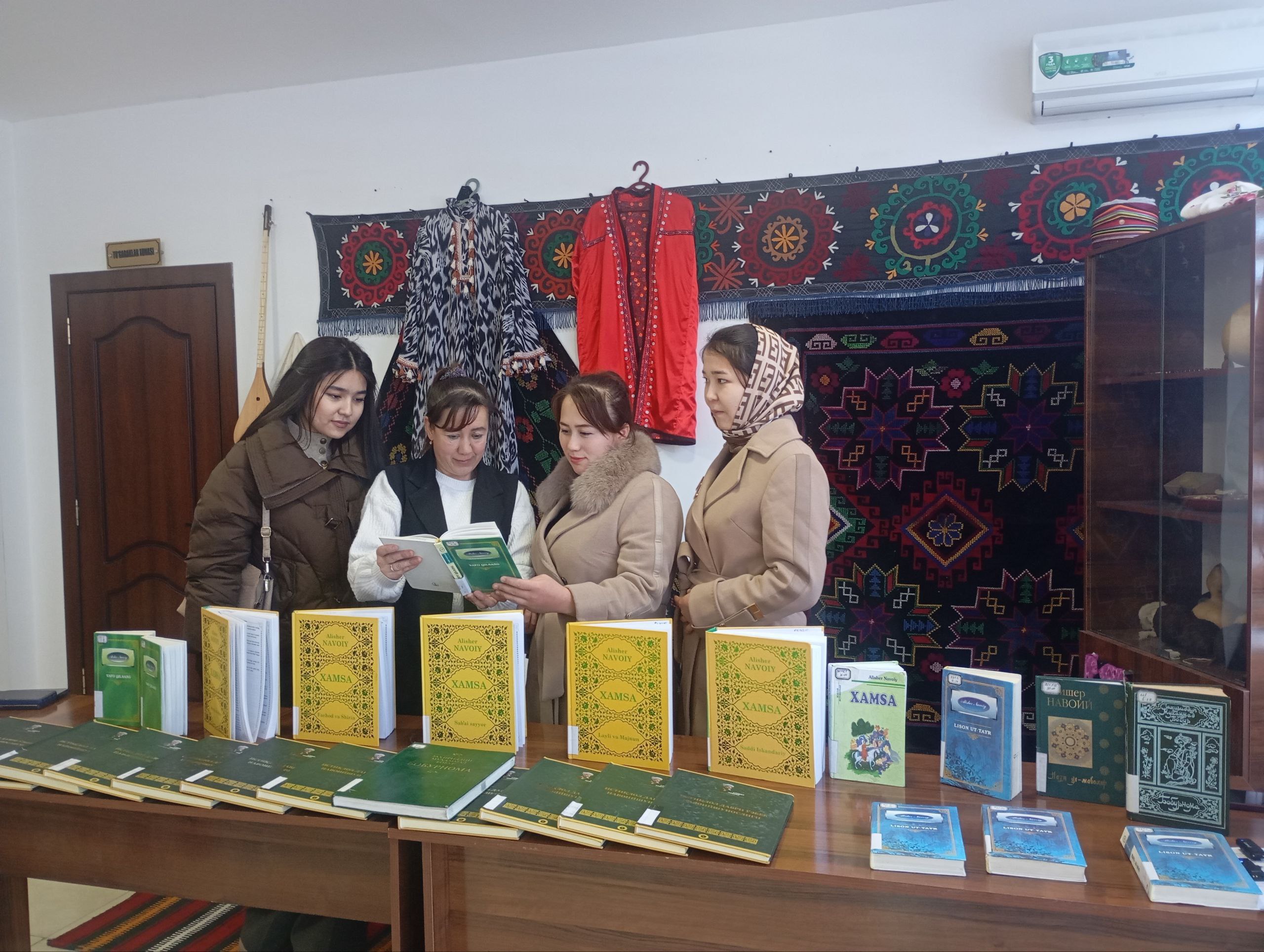 Tadbir doirasida Axborot-kutubxona markazi xodimlari tomonidan Navoiy va Bobur ijodiga bag‘ishlangan kitob ko‘rgazmasi tashkil etildi. Ko‘rgazmada ulug‘ ajdodlarimizning boy adabiy merosi, tarixiy asarlari va ular haqidagi adabiyotlar namoyish qilindi.