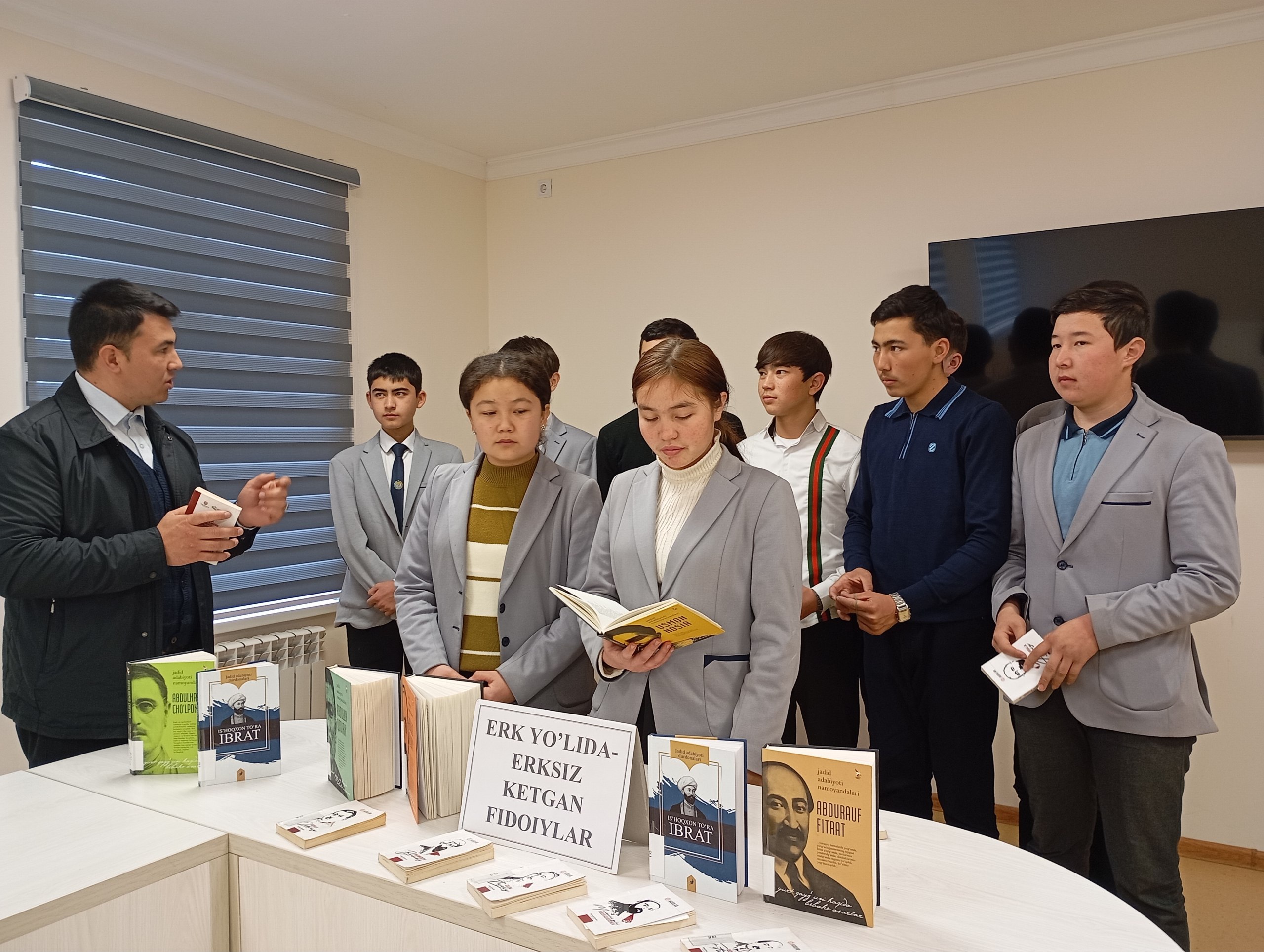 🔹️Bugun G'allaorol axborot -kutubxona markazi hamda Ixtisoslashtirilgan maktabdagi ko'chma kutubxonada Vatanni mustabidlar zulmidan ozod bo'lishini, millat farzandlarini sharafga to'lganlar qatorida ko'rishni orzu qilgan, xalqimizning qalbi uyg'oq farzandlari "Jadid adabiyoti namoyondalari" ya'ni Abdulla Qodiriy, Fitrat, Behbudiy, Cho'lpon, Abdulla Avloniy, Usmon Nosirlarni yod etib "Erk yo'lida-erksiz ketgan fidoiylar" nomli kitob ko'rgazmalari hamda kitob taqdimotlari o'tkazildi. "Jadid adabiyoti namoyondalari" ruknidagi kitoblarimizni o'qir ekan, kitobxon o'zini shu Vatanning ongli fuqarosi, Vatani va millati taqdiri uchun mas'ul inson sifatida namoyon qilishga o'zida jur'at