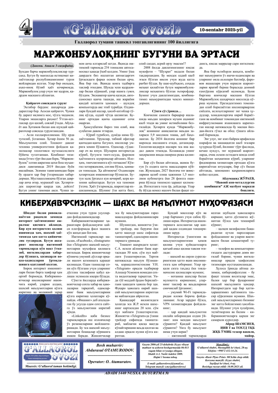 🏛G'allaorol tumani axborot-kutubxona markazi xodimi Safarbekova Sarvinozning "Kitob va mutolaa haftaligi " nomli maqolasi chop etildi!