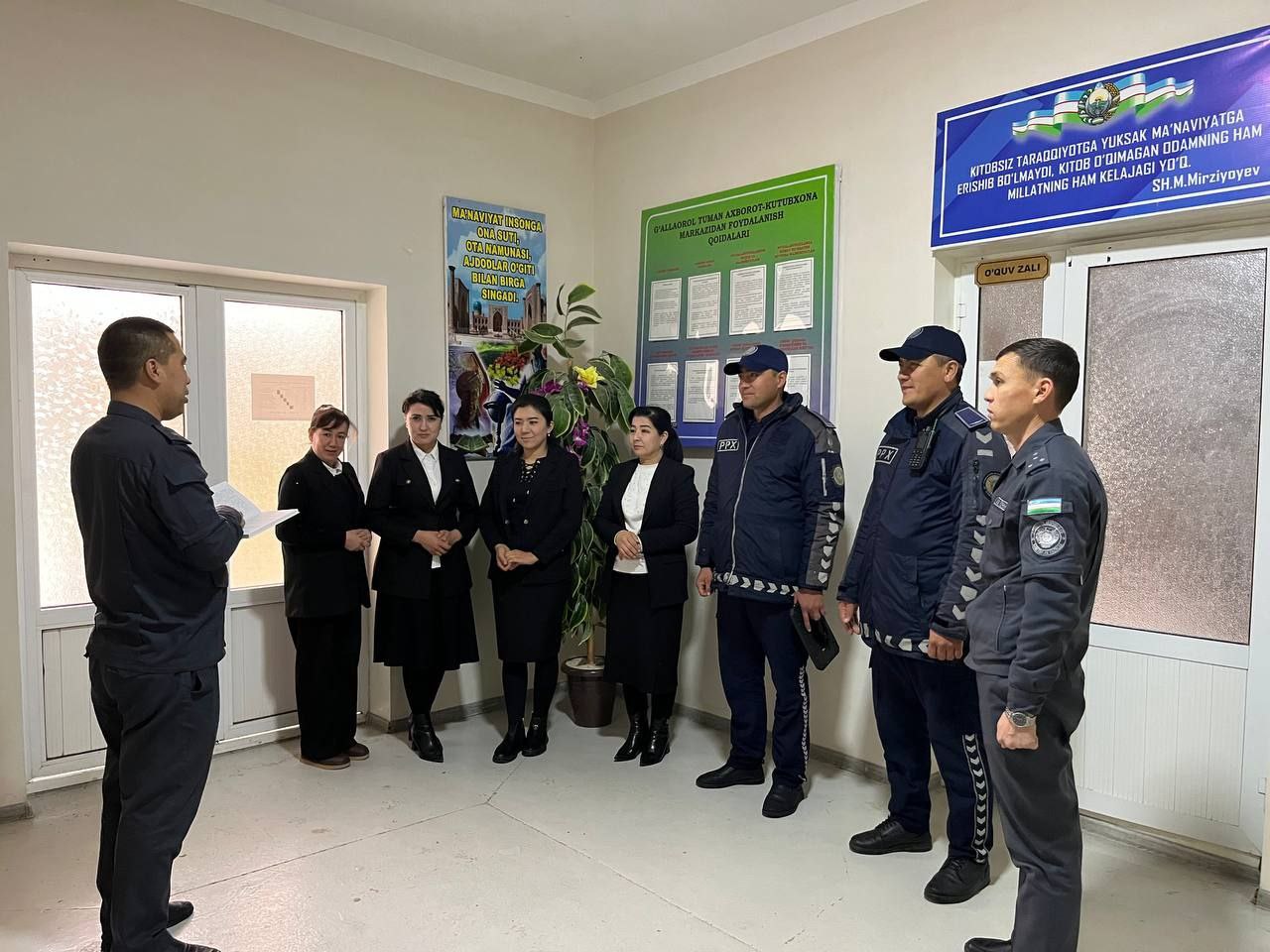 Jizzax viloyati Transportda xavfsizlik taminlash Gʻallaorol bekatida xavfsizlik taminlash bo'limi boshligʻi mayor L.B.Norquziev va PPX xodimlar bilan Gʻallaorol tumani kutubxonasi xodimlari bilan Respublikamiz miqyosida o'tqazilayotgan "Xavfsiz va sogʻlom yurt" kabi keng qamrovli profilaktik tadbir tushuntirilib, tushuntirish ishlari olib borildi