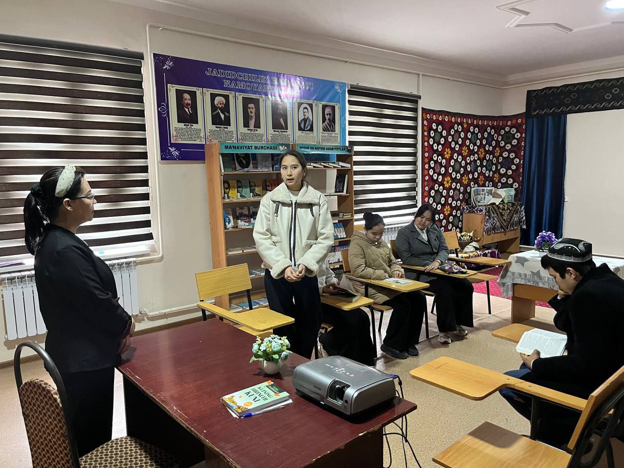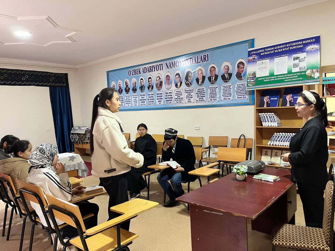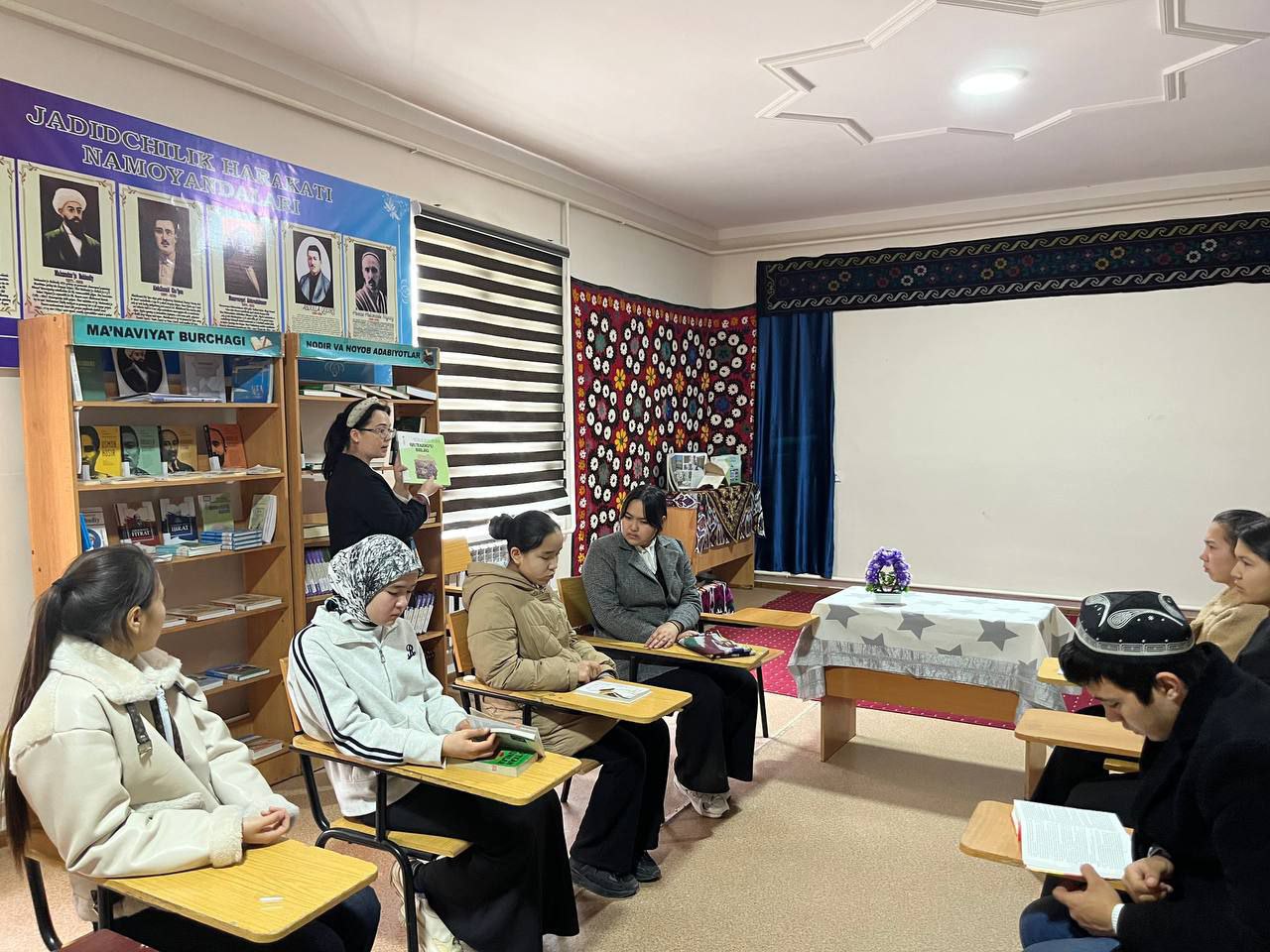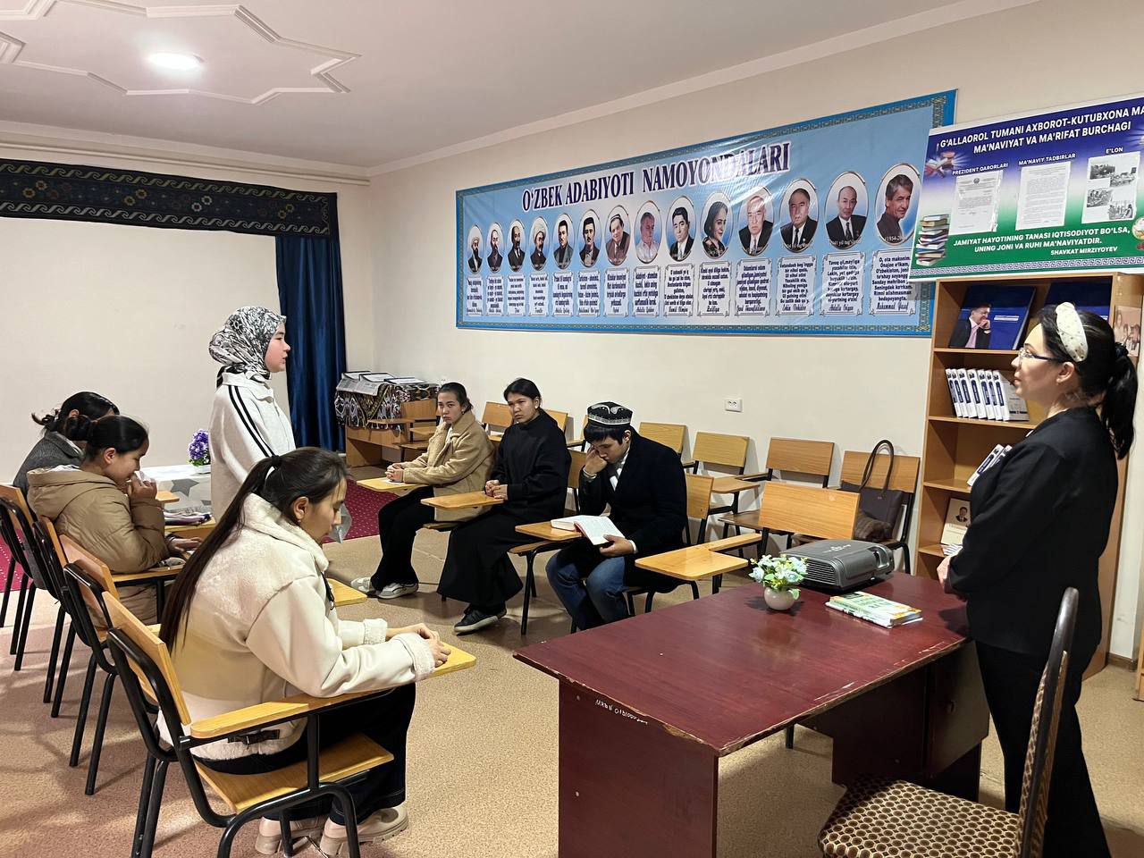 Joriy yilning 27-fevral kuni tuman axborot-kutubxona markazida O‘zbekiston Respublikasi Prezidentining 2026-yil 15-yanvardagi “Kitobxonlik madaniyatini rivojlantirish va aholi o‘rtasida kitob o‘qishga qiziqishni oshirish chora-tadbirlari to‘g‘risida”gi PQ–9-son qarori ijrosi yuzasidan tumanimizdagi yosh kitobxonlar bilan davra suhbati oʻtkazildi.